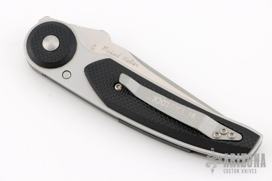 The BladeLOCK is an incredibly strong folding knife with a blade that locks when open, and locks when closed. The ingenious positive lock system operates by pressing the thumb stud. To open, press the thumb stud and rotate the blade as you would other knives. When you hear the clean, crisp "snap" of steel locking with steel, the blade is lockeduno doubt about it! The strength of the BladeLOCK meets or exceeds any claimed lock strength of existing production folders. To close, press the thumb stud and rotate the blade into the handle. Snap! The blade is locked closed, with no chance of opening when carried in a pocket. The AUS 6M stainless steel blade is a Walker Clip Point in satin finish, pivoting on Teflon bearings. The open design 420J2 stainless steel frame receives a contrasting bead blast finish. Black injection molded Zytel is used for the back spacer, lock covers, and scales. Torx fasteners are used throughout.