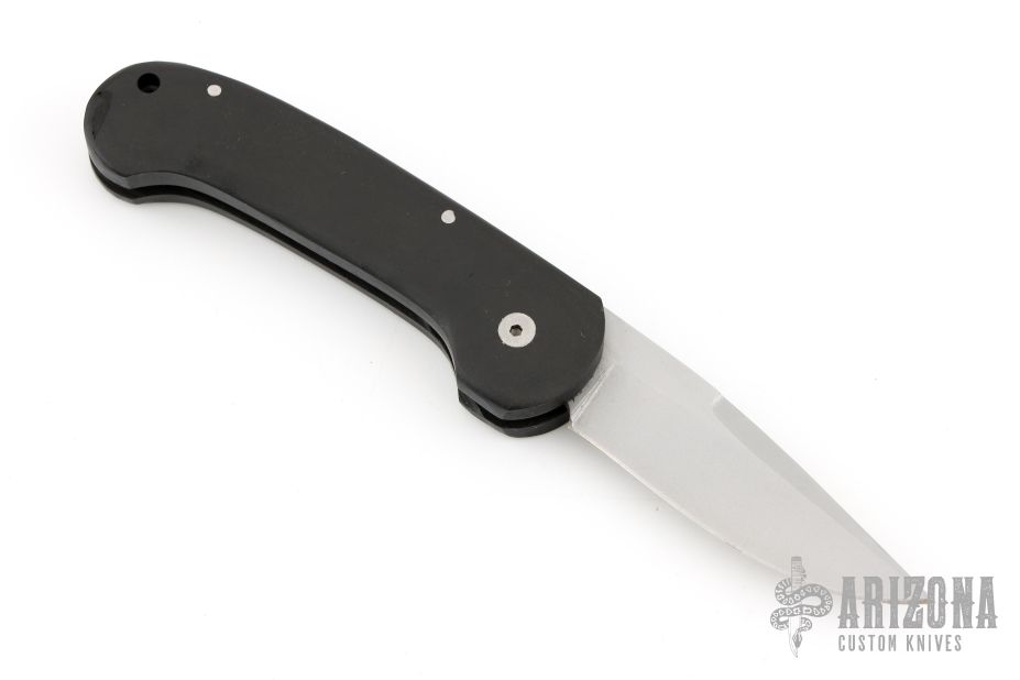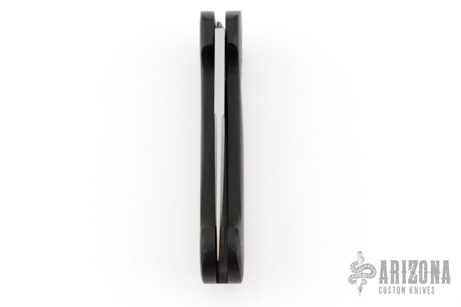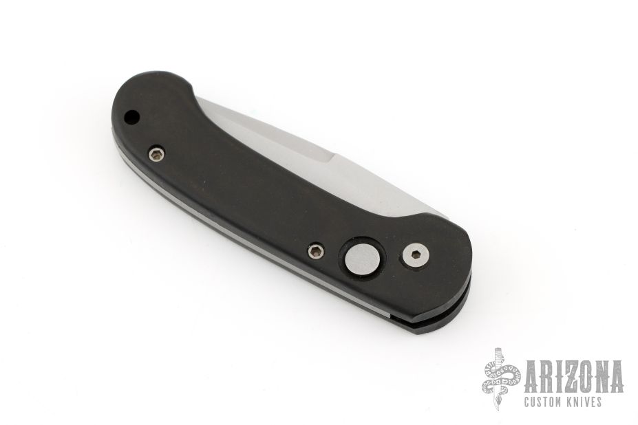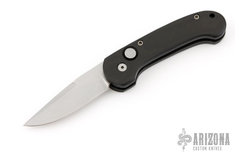 This Custom Auto by James Huckeba features a bead blasted blade with a black paper micarta frame and a stainless steel backspacer. Strong and fast coil-spring opening. "96" on the blade (which i am assuming is the year it was made). Excellent condition.