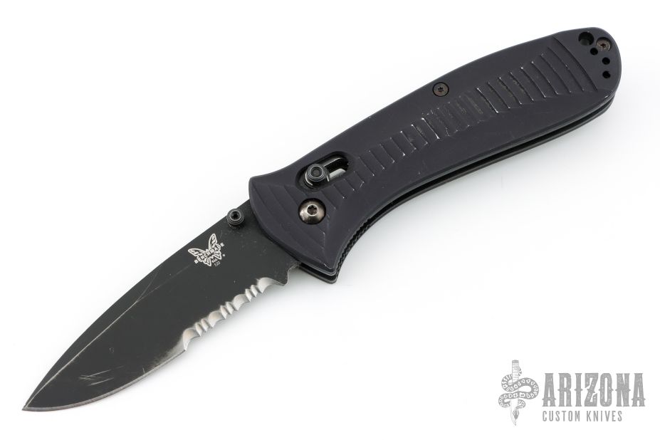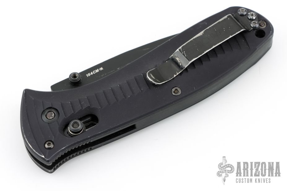 Introducing another ultimate in functional synergy. Single-hand ambidextrous, manual AXIS open function. It's an unbeatable duplicate of the Benchmade automatic Model 5000 Auto AXIS, but in a Manual version! Secure grip is had with a unique two-directional tread machined into the aluminum handle scales movable steel carry-clip clips in for action when you need it.