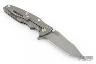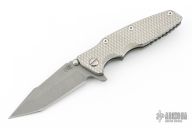 This Eklipse Tri-Way by Hinderer Knives features a working finished tanto blade with dual thumbstuds, flipper and notched thumbrest. The handle has a working finished titanium frame with a textured titanium scale and matching titanium clip and hardware. Nice detent, lockup and blade seating. Comes with Hinderer box. Excellent condition.