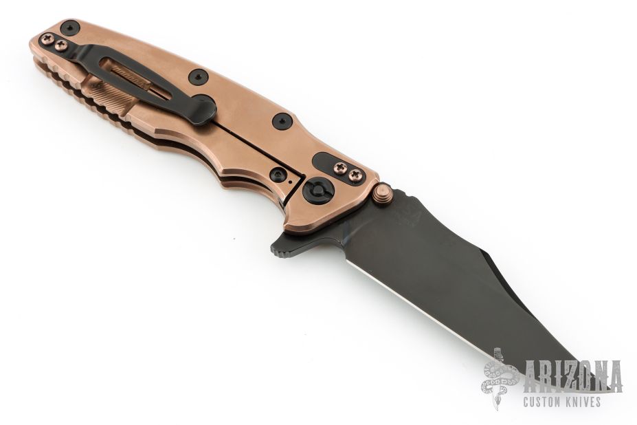 This Eklipse Tri-Way by Hinderer Knives features a DLC stonewash finished bowie blade with dual thumbstuds, flipper and notched thumbrest. The handle has an anodized finished titanium frame, textured titanium scale and black finished titanium clip and hardware. Nice detent, lockup and blade seating. Comes in a Hinderer box with card, Excellent condition.