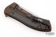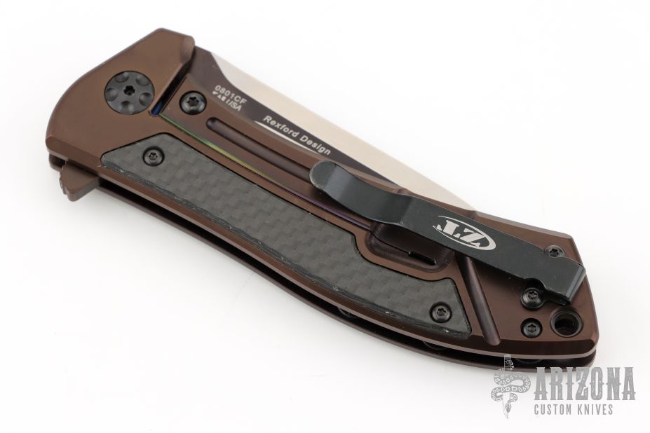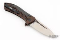 This 0801CF Rexford Limited Edition Copperhead Flipper #0680 has a two-tone satin and black M390 stainless steel drop/spear point blade. Handle is anodized titanium with carbon fiber overlays, black finished stainless steel tip up (RH/LH) clip, and lanyard hole. Includes the original box and papers. Has a couple light scuffs and scratches, Excellent Condition.