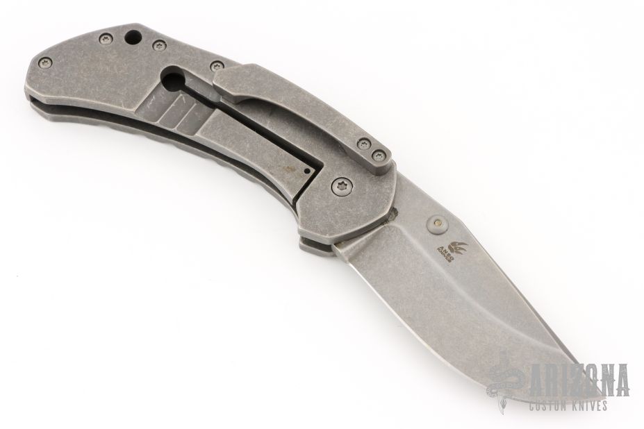 This Minos by Boker is a Jens Anso design. It features a tumble finished blade with single thumbstud. The handle has a milled and tumble finished titanium frame with tip down clip and matching backspacer. #317 on blade. Comes with orignal box, and pouch. Has some scuffs, excellent condition otherwise.