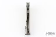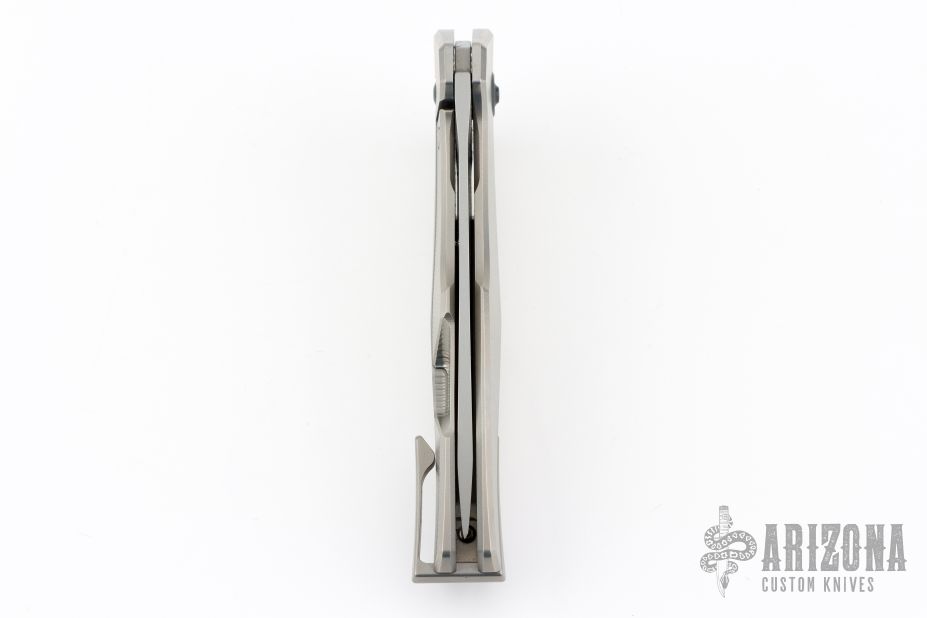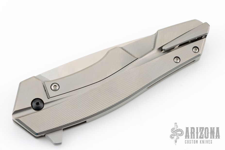 This knife features a satin finished San Mai blade with S110V core. The handle is all titanium with matching backspacer and right or left tip up clip. Nice detent, lockup and blade seating. Comes with original box and papers. Serial # 0158 of 250. Has a few light scuffs, otherwise Excellent condition.