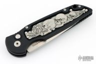 Bruce received his art training at Cal-State University at Los Angeles and is a graduate mechanical engineer. He started engraving in 1978 and has been engraving full time since 1984. Bruce spends around 60 hours of engraving time on each knife.