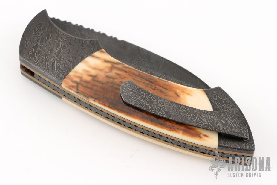 Home Products Damascus and Mammoth Ivory Hawkbill Linerlock