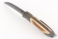 Damascus and Mammoth Ivory Hawkbill Linerlock