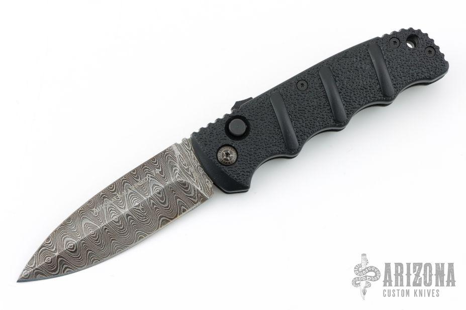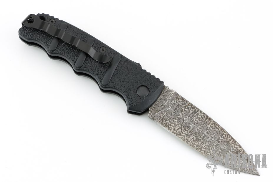 This Boker Kalashnikov features a 192 layer Damascus blade with notched thumb rest. #367 on blade. Black FRN handle. Comes with original box and papers. Excellent condition.