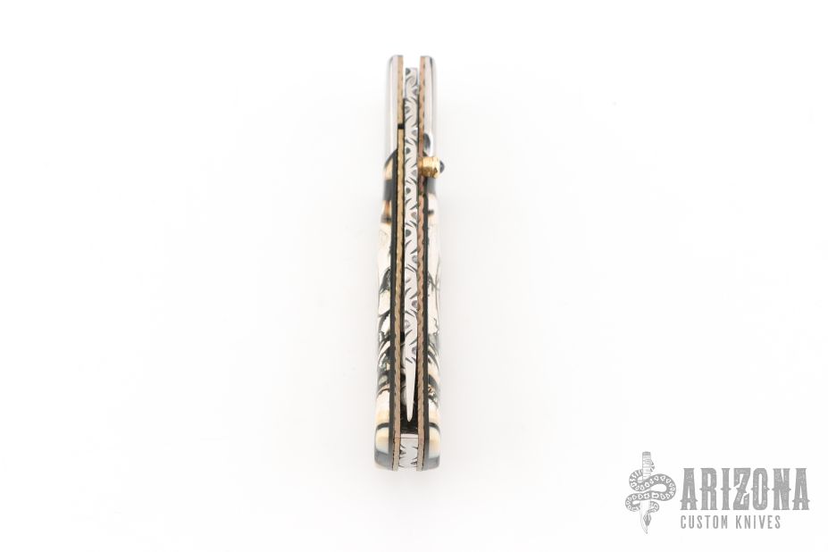 I have been a member of the Florida Knifemakers' Association since it's start in 1977 and a member of the Knifemakers Guild since 1998. I make knives one at a time using ATS-34, 440-C, D2 and various Damascus steels. When it comes to handle materials natural stuff like fossil ivories, bone, horn, exotic woods and pearl work best for me. I make liner lock folders, some automatics, hunters, skinners, and fillet knives. I also make the sheaths that go with them.