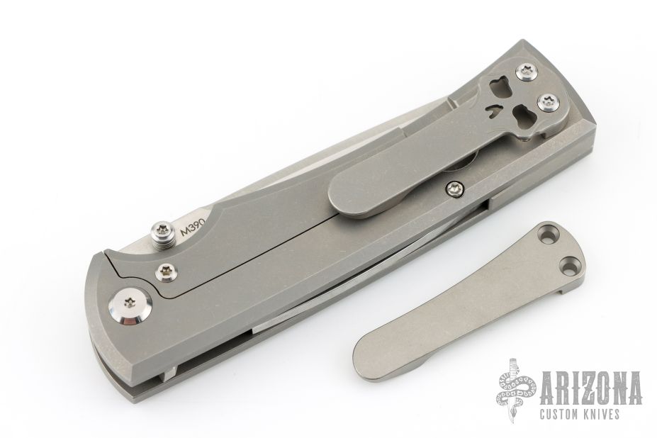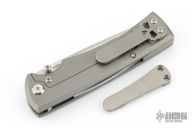 This Chaves Ultramar Liberation has been professionally converted to a side-opening automatic by Kyle Vallotton. It features a satin finished blade with the Chaves logo, a tumbled titanium frame with skull pocket clip positioned for tip-up carry, and a matching titanium backspacer. Additional details include jeweled steel backspring. The knife comes with its original box and a spare titanium pocket clip, and is offered new from the maker.