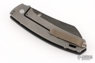 This Haddock Linerlock by Boker is a Jens Anso design. It features a DLC tumble finished blade with nail nick. The handle has a black G-10 front scale and a tumbled titanium lockside, tip up or down reversible stainless steel clip. Lanyard hole at the butt. Comes with original box and papers. #159 on the blade and box. Has a couple light scratches, otherwise excellent condition.