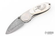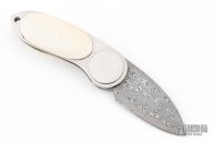 Damascus Linerlock with Scrimshaw on Mammoth Ivory