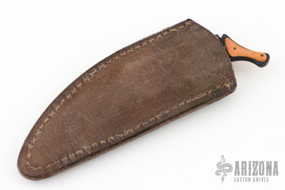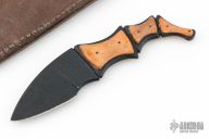 The "Witchfinger" by Journeyman Smith Rik Palm is made of one piece of deep etch Damascus that has been hand carved and textured. Random pattern Damascus made of 1084 and 15n20, carved bones, textured Picasso, .191" blade stock and 1.38" blade depth, integral construction. Comes with COA and leather sheath. Excellent condition.