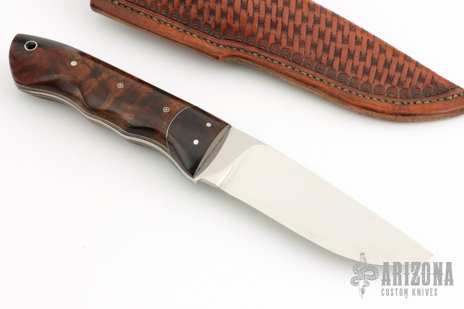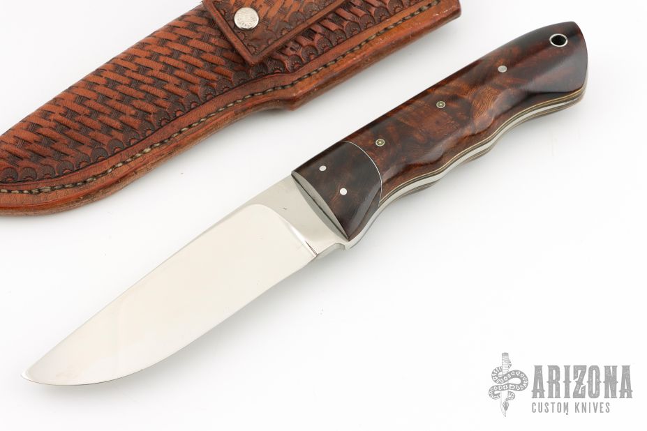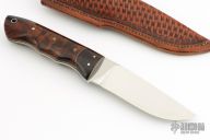 Wayne utilizes the stock removal method and uses only premium steels and handle material in every knife he makes. He does all of the work himself, including heat treating and tempering, nothing is ever farmed out. He makes them one at a time by hand in his Colorado shop. All of his sheaths are also handmade by Wayne, custom crafted to fit each knife. Wayne primarily makes full tang hunting and skinning knives for sportsmen, guides and outfitters. From time to time, he also makes larger bowie, camp and tactical knives as well.