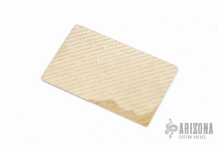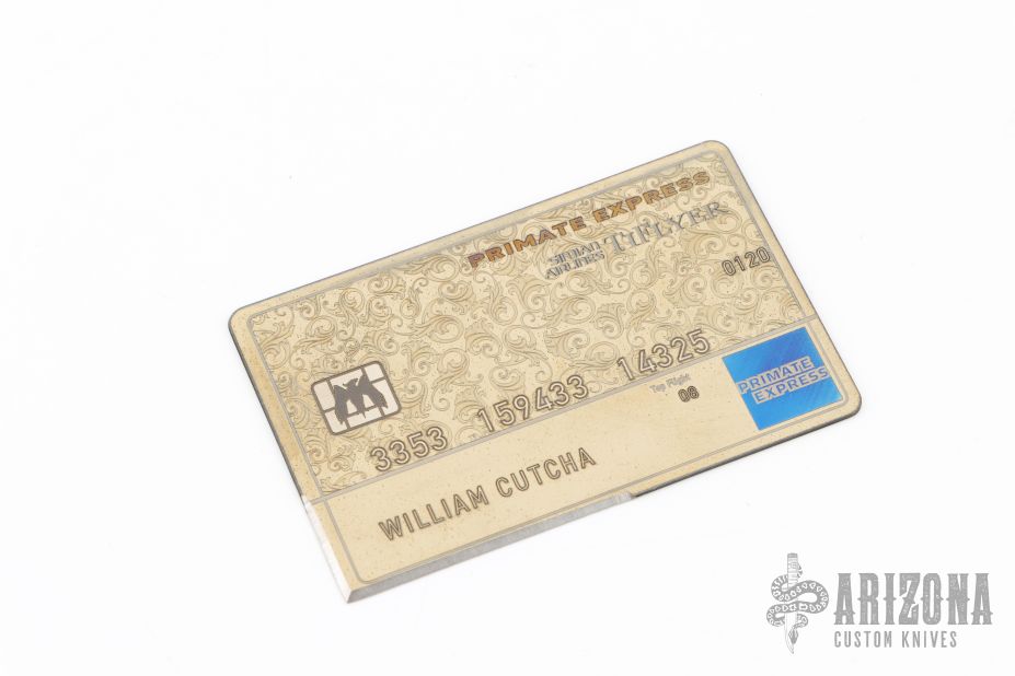 Primate Express Titanium Card Blade by Mummert Knives. Has Fiber Laser Color and Deep Etch. Tungsten carbide edge, RC 72. New Condition.