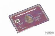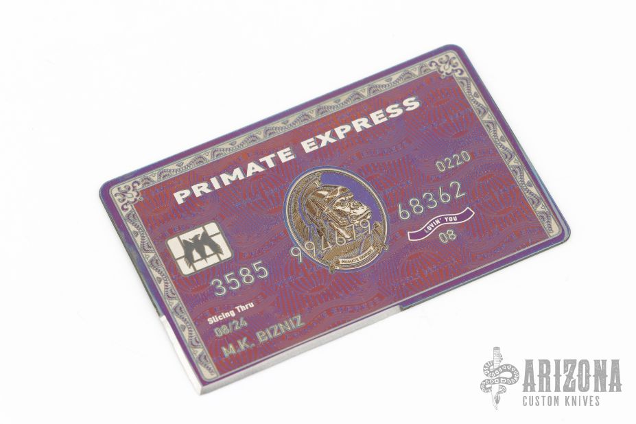 Primate Express Titanium Card Blade by Mummert Knives. Has Fiber Laser Color and Deep Etch. Tungsten carbide edge, RC 72. New Condition.