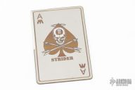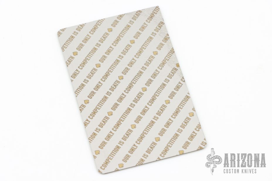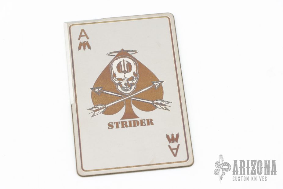 Strider Express Titanium Card Blade by Mummert Knives. Has Fiber Laser Color and Deep Etch. Tungsten carbide edge, RC 72. Comes with original packaging. Excellent condition.