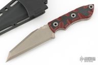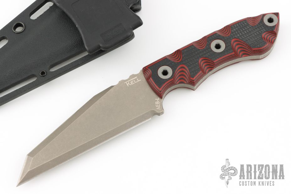 A T.Kell twist on the Wharncliffe blade with some Reverse Tanto thrown in. The Wharncliffe is often thought of as a go-to CQB blade with the Reverse Tanto being a close second. So why not make the ultimate CQB blade by combining the two and putting them on our famed Raider handle platform! The Guardian has a dead flat typical edge, We added reverse tanto style reverse edges and this thing turned out to be nothing but nasty. Keeping with the CQB blade theme it has a very steep 30 degree grind allowing the Guardian creates deep and wide cuts while maintaining a blade thickness to withstand it all. Made from high carbon steel heat treated to 57 HRC using our detailed heat treatment process. Made from .165 thick steel there's nothing you can throw at the Guardian that it cant handle. Made on our famous EDC handle platform it disappears along your belt line and has a secure grip that locks you to the knife in forward or reverse grip. Plated in the most durable blade coating on earth, our exclusive Nickle Boron T1C finish to provide a nearly indestructible blade coating that is so low in friction it flies thru cuts while completely protecting your blade from corrosion. The guardian is built for the same battle tough environments that all T.Kell blades have become known for. Perfected balance points, comfort of grip and EDC concealability make the Guardian a perfect backup or primary CQB item. You can count on the Guardian and you can count on T.Kell Knives to build you a blade that is unequalled in quality, durability, hand feel, and function. When your hand meets a T.Kell knife you'll instantly understand why we have become known for our blades that are so comfortable and balanced that they move with you.