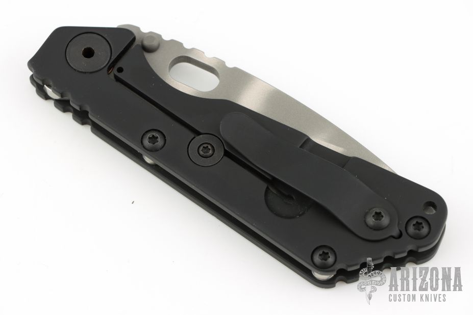 This Mick Strider SNG framelock folder features a ghost stripe finished drop point blade with thumbhole and notched thumbrest. The handle has a black titanium frame with titanium clip, tip up carry. Jimping on blade spine. Includes Hinderer "Lock Bar Stabilizer" for maximum reverse lock retention. Nice detent, lockup and blade seating. Has a couple light scuffs, excellent condition.