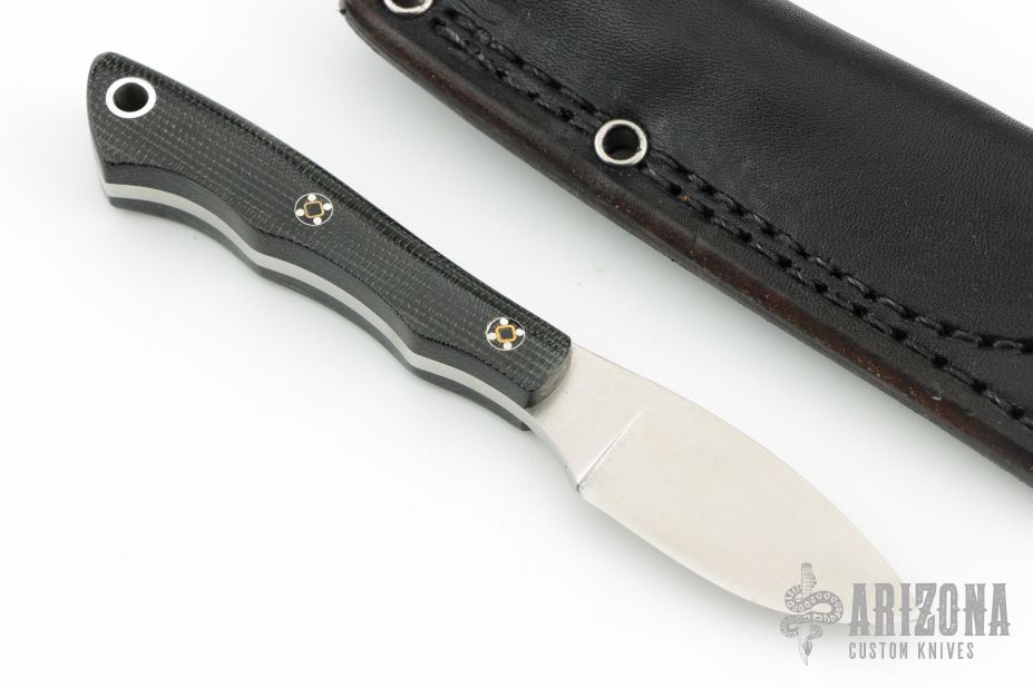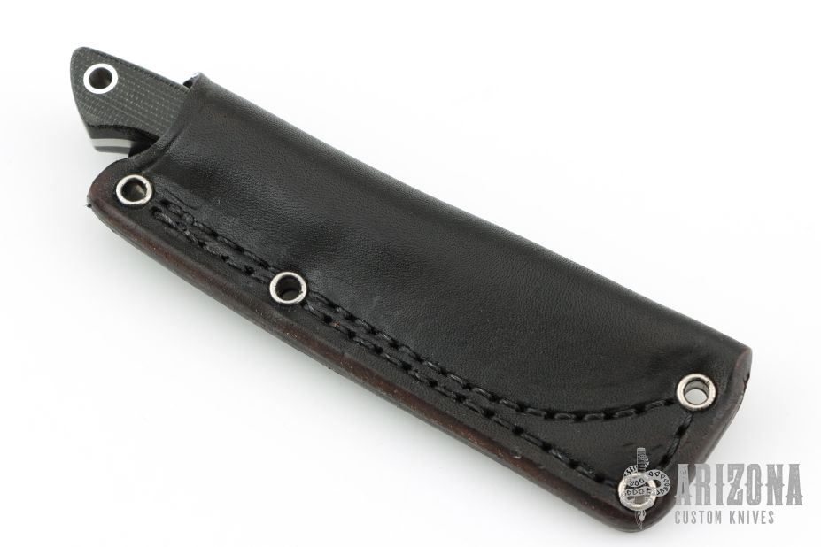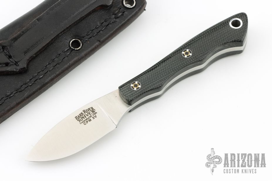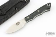 This Micro Canadian by Bark River features a satin finished blade, .123" blade stock and .736" blade depth, full tang construction. The handle has black canvas micarta scales with mosaic pins and lanyard tube. Comes with a black leather sheath and original box and papers. Excellent condition.