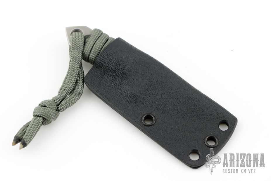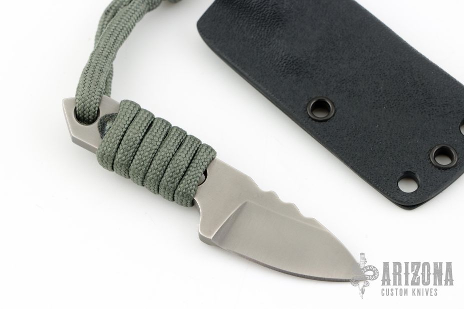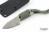 This Skeeter by Peter Atwood features a tumble finish CPM 154 drop point blade with cord wrap handle. Kydex sheath. Comes with bag and card. Has scuffs and scratches. Good condition otherwise.
