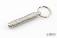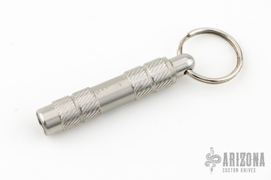"This whistle is turned from a solid bar of 303 stainless steel and contains a Delrin insert. A great addition to your keychain or wear it in a cord around your neck. Made to last virtually forever." Excellent condition with bag and card.