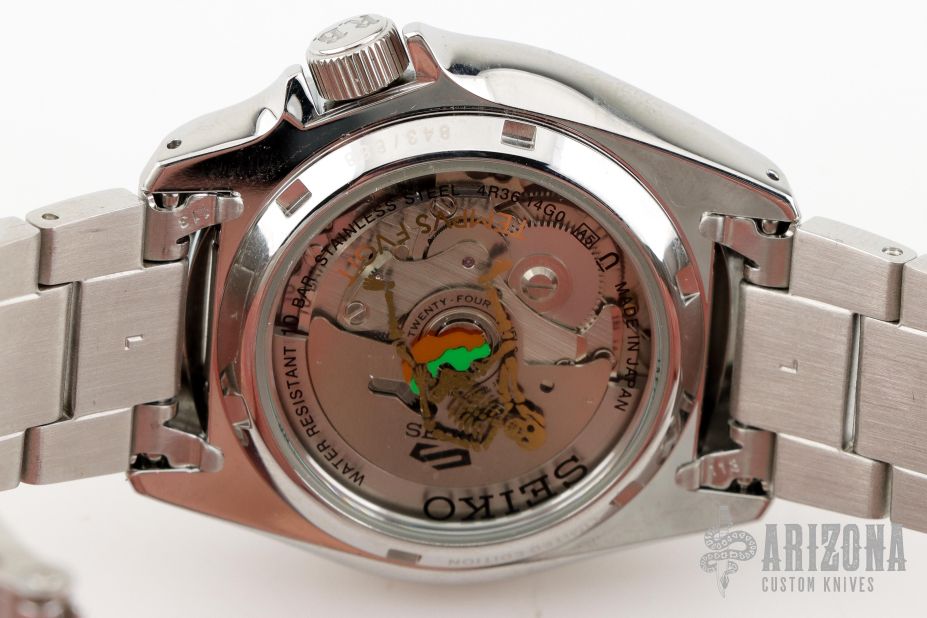 40mm diameter. Caliber 4R36 with manual and automatic winding capabilities. 24 jewels. 21,600 vibrations per hour. Approximately 41 hours of power reserve. Luminous hands and markers. Stainless steel cases and bracelets. Bilingual day and date calendars (English and Japanese). Edition of 888 per design. Made in Japan.