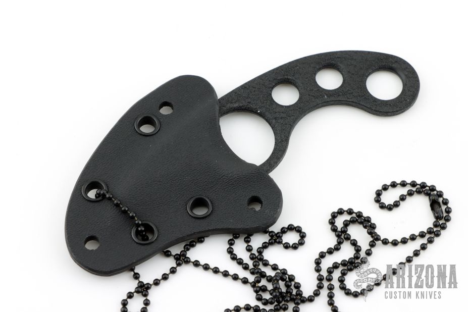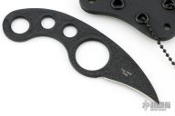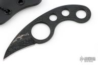 This La Griffe by Emerson Knives features a black coated chisel ground blade. The handle is skeletonized for a lighter overall weight. This knife was designed by Fred Perrin. Comes with Kydex sheath and ball chain. Dated 2011 and #7732. Excellent condition.