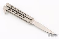 This Balisong by Bali-Song features a satin finished blade with satin finished stainless steel handles and T-latch. Comes with original box. Excellent condition.