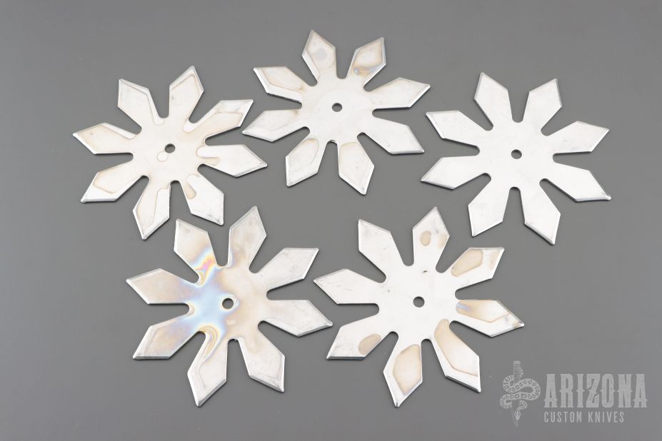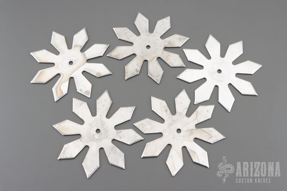Set of 5 4.5" 8 point stars. Has some light scuffs and scratches, great condition otherwise.