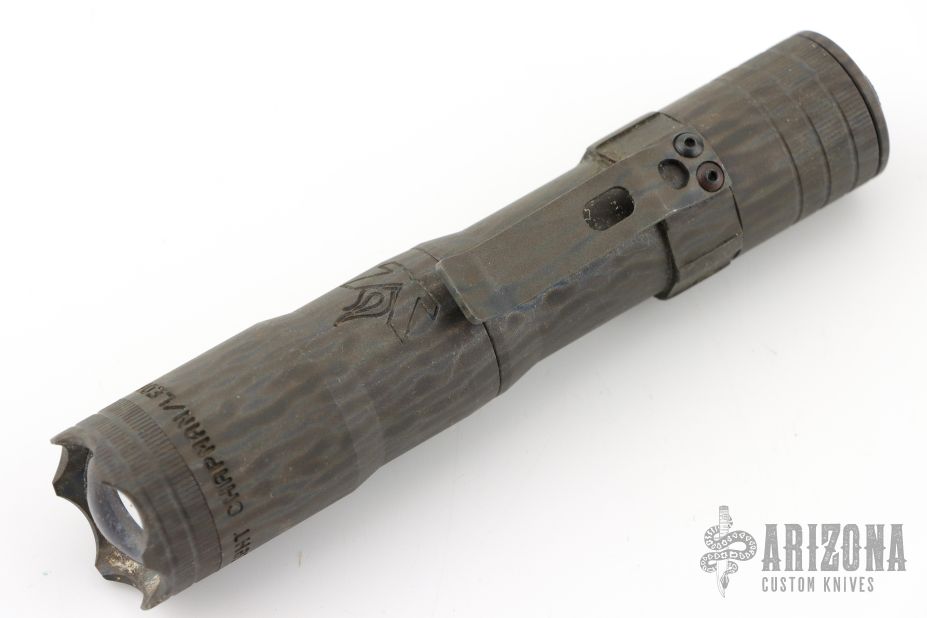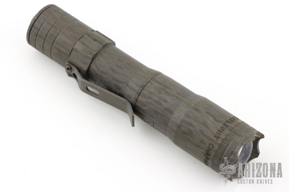 Preowned, has some scuffs on the finish, otherwise excellent condition. Comes with original box. Striderized finish 1) High Impact Hardened Optical Glass Lenses – protects the LED from the toughest of conditions and diligently bends the light much like a magnifying glass to ensure maximum brightness, distance, and efficiency. But don’t let the durability of a glass lens fool you, these lenses have been vigorously tested and designed to withstand excessive abuse while retaining optimal performance. 2) Patented Focusing Aspherical Lens System – This patented technology allows for a significant array of focusing options ranging from a flood to spot beam. This ensures that the perfect focus setting is available whether you are concentrating the light hundreds of yards away, or simply lighting up an object nearby. 3) Titanium 6AL-4V- domesticaly sourced aerospace grade titanium. DFARS certified. 4) McClicky Momentary Activation On/Off Switch – This reliable easy to use tailcap switch enables the LensLight Mini’s 2-stage microprocessor to power the flashlight at either an efficient low setting or high output level for maximum brightness. Simply press down once for low setting, press again for high setting, or simply press all the way down for constant-on. 5) Light Emitting Diode –A premium exclusive high-tech, high-efficiency LED is used to emit astonishing power that is untouchable by any other light. This everlasting LED is sure to exert enough luminosity to stop any and everything in its track. Now that’s what you call an LED! 6) Premium Grade O-Rings- LensLight Mini contains 6 strategically placed O-rings throughout the flashlight to seal and protect the lights internals from dust, moisture, and any other micro-substance that it may come in contact with. This ensures that the LensLight performs at maximum efficiency at all times and your investment last a lifetime. 7) 2X CR123 Batteries – powered using two CR123 or RCR123 batteries. 8) Titanium Pocket Clip 9) Delta Grip- Delta engraved grip pattern for rotary focus operation. This high grip texture is engraved on a high frequency 50,000RPM spindle, 4-Axis CNC mill. This ensures quality and precision depths for multi-directional grip. 10) Tailstand Backcap- Allowing the user to stand their LensLight facing up. (2) CR123 or RCR123 Batteries Patented Focusable Aspheric Lens System Titanium 6AL4V Construction (domestic materials only) 2-Stage Clicky Tail Cap Switch (low: 5 lumens/high: 440 lumens) High Tolerance American CNC Machining Double Lens - high impact hardened glass Chem-Kote Contacts and Heat sink Aerospace Grade Thermal Potting and Flow Management Weather Proof/Water Resistant Premium Bin High CRI CREE XPG-2 LED Fully Regulated Light Engine