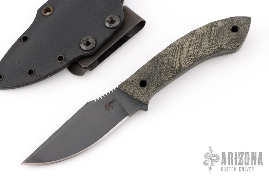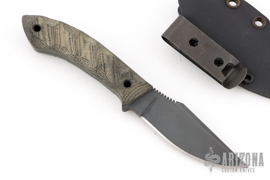 Jason Knight Design by Winkler Knives Knife Specifications Blade steel: 80CrV2 Black oxide no-glare finish Blade length: 3 1/4" Overall length: 7 1/4" Blade thickness: .165" Full skeletonized tang Thumb index file work Sheath Lined Kydex® Spring steel, belt clip Designed for multiple carry options (See our Info page for carry options)