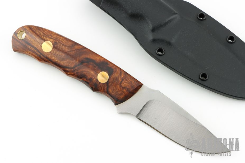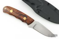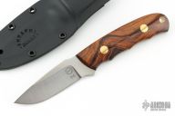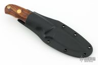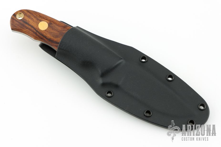 This K-9M Modified Personal Utility by Dozier Knives features a satin finished blade with .126" blade stock and .947" blade depth, full tang construction. The handle has wood scales with brass pins and lanyard hole. Comes with kydex sheath. Has some scuffs and marks on the blade. Excellent condition.