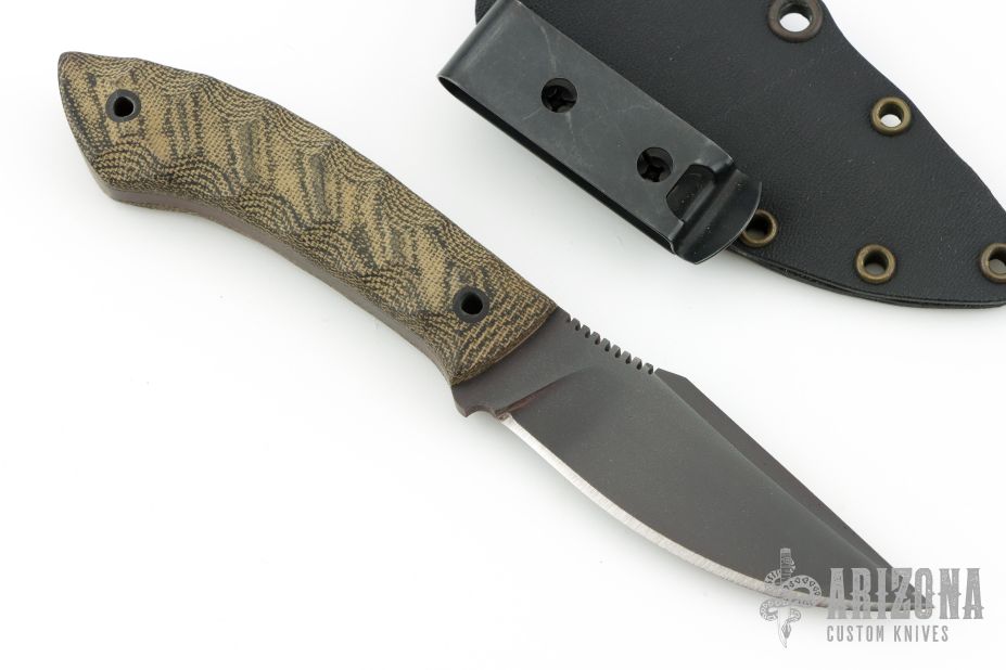 Jason Knight Design by Winkler Knives Knife Specifications Blade steel: 80CrV2 Black oxide no-glare finish Blade length: 3 1/4" Overall length: 7 1/4" Blade thickness: .165" Full skeletonized tang Thumb index file work Sheath Lined Kydex® Spring steel, belt clip Designed for multiple carry options (See our Info page for carry options)