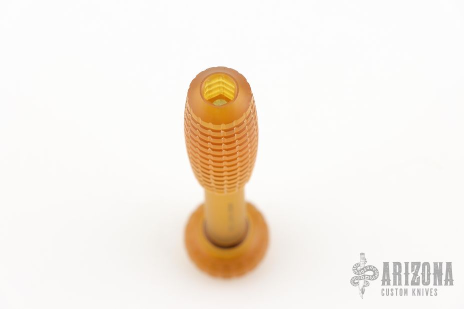Made from textured Ultem, it has a both secure and comfortable grip, that allows for both precision and torque. The spinning head sits on two precision bearings and rests well in the palm of your hand but also offers you to position your index finger tip for precision work. I have used spinning drivers for years in my shop for putting my knives together and these drivers are designed with this knowledge in mind. I designed this great little tool for Audcious Concepts in Finland, who had them made.