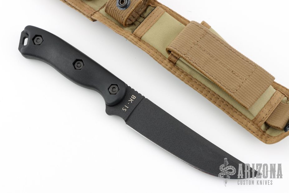 The BK15 Short Becker Tailing Point is modestly sized field knife perfect for belt or pack carry. It's a do it all knife for hunting, camping, and all types of outdoor activities. But it can also be counted on in tactical situations. It comes with two sets of zytel handles, one black and one coyote brown, depending on your preference. The Cordura sheath is very high quality with two retention straps for Airborne units and a storage pouch for survival or sharpening items. This is a lightweight knife with a thin comfortable handle and can be carried all day without issue.