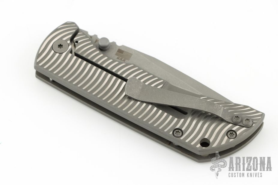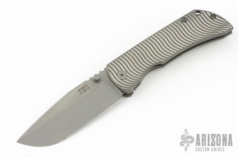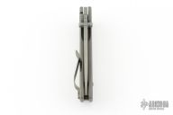 This MAC2 features a stonewashed clip point Magnacut blade with dual thumbstuds and a notched thumbrest.  The handle features a satin two-tone anodized titanium frame with blasted hardware, and a matching tip up pocket clip. Includes the original box and COA. Excellent Condition.