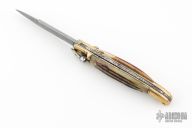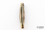 Angelo Campolin Sr. was born in 1923 in Maniago, Italy. He worked on perfecting his knife making skills before WWII and at this time made his first switchblades. After the war, in 1947 he started his company and made 30 stilettos with the marking “Angelo Campolin”. In the 1970’s Angelo’s son Gianni started to work in the company and they were specializing in folding hunting knives and also manual folding stilettos for the Robert Klaas company in Solingen Germany with their Kissing Cranes mark. In 2002 American switchblade collectors Dan Fuller, Brad West, and Tim Zinser were visiting Maniago and enjoying a few glasses of wine in a bar with Angelo Jr. and Gianni. The discussion was about a new name for some knife projects they wanted to pursue. It was Brad West that suggested the tang stamp should be AGA, for Angelo, Gianni, Angelo, thus representing three generations in the knife making business. The Campolins liked it and it stuck. In the beginning it was just a few items, but grew to the point where now there are 12 models and different scale options. The goal has been to offer quality switchblades using the old methods and traditions. Being a collector himself, Angelo Jr. knows what others like. The company headquarters has moved to Austria with production still in the original Maniago shop, as well as the others in Maniago that produce the knives for A.G.A. Campolin.