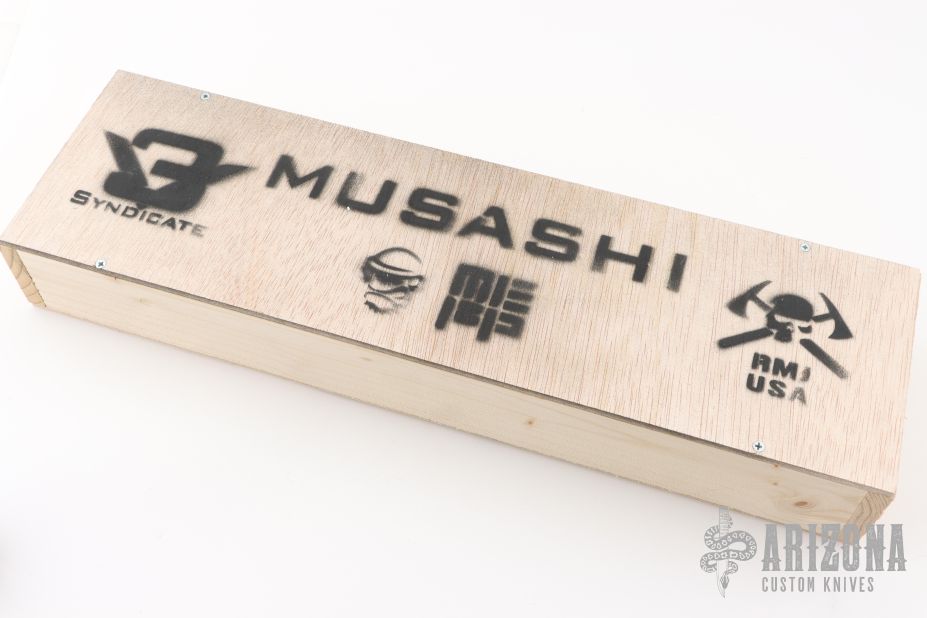 Each 3V Syndicate Musashi comes with a sheath, wooden box, sealed introduction letter to the 3V Syndicate complete with coin and patch.