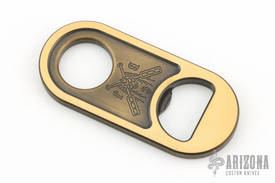 This Bottle Jak by Craft Brew Junkies features 1/4" brass construction and a "Barrel Aged" finish. The front features the Craft Brew Junkies logo. Excellent condition. Comes with a COA.