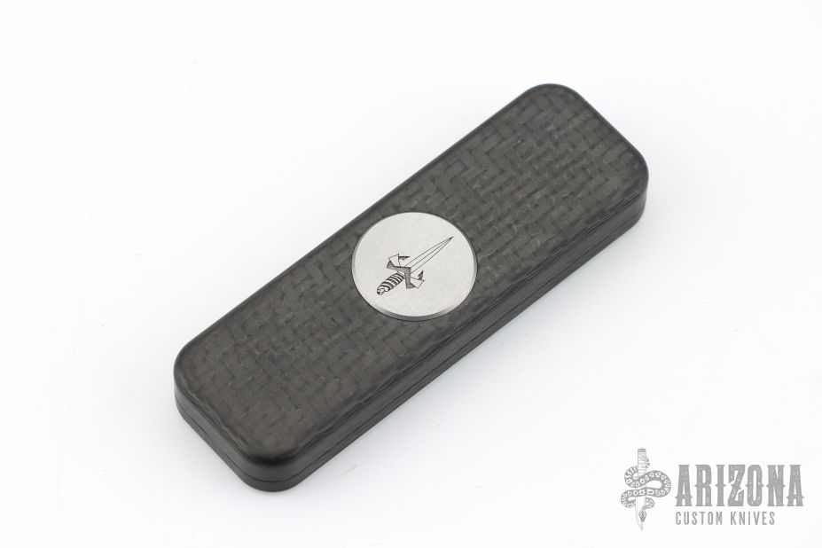 This Mini Halo IIIs by Marfione Custom Knives features a black aluminum frame with double vapor blasted titanium charging handle and hardware, push button and charging handle. It has a mirror polished Star Grind tanto blade. Comes with a carbon fiber box with laser engraved stainless steel escutcheon. Comes with original box, COA and zippered case. Excellent condition. #050 and dated 10/2021.