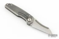 This Slickleg by Jason Stout features a satin finish and chisel ground blade with fullers. The handle has a stonewash finish titanium frame with a stainless steel posts. Has a stop detent. Comes with a velcro case and COA dated NYCKS 2022. Excellent condition.