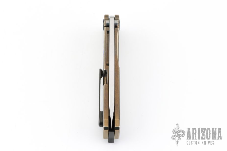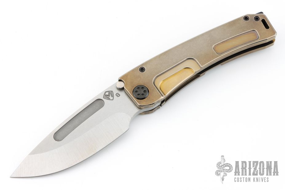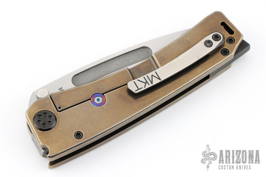 This Marauder from Medford Knife and Tool features a stonewash finished blade with fullers. The handle has an anodized titanium frame over a steel backspacer and titanium tip up clip. Includes original box, hard case and COA dated May 4, 2021. Has a couple light scratches, otherwise excellent condition.