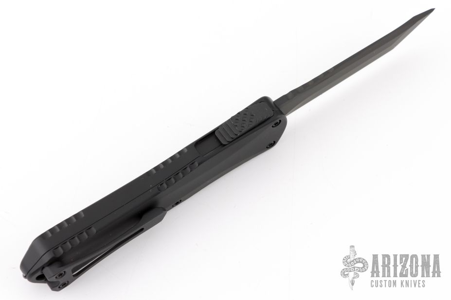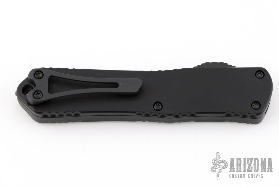 This Manticore-E by Heretic Knives features a DLC tanto blade with notched thumbrest. The handle has a black aluminum frame, black stainless steel hardware and tip down clip, and a black thumbslide. Comes with original box and Predator bead. Excellent condition.