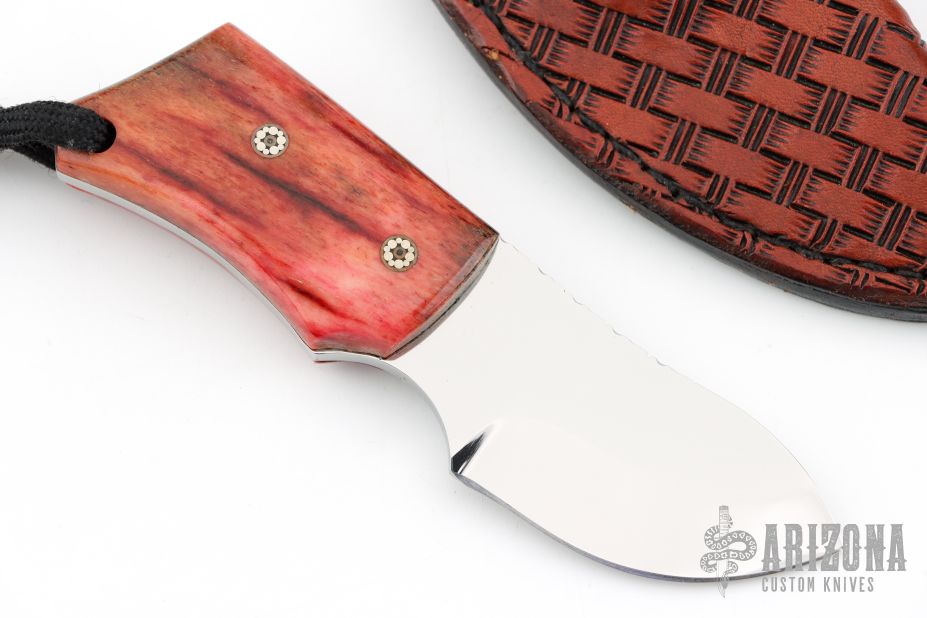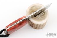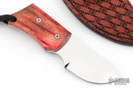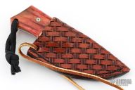 Visit this maker's website: Carter Crafts. Mike Carter has been making custom knives for a little over 5 years after learning the craft from his friend and mentor Gil Hibben. He is a probationary member of the Knifemaker's Guild and hopes to earn voting status with the Guild at the 2009 Guild Show. Mike is still a part time knifemaker working from his home shop in Louisville, Kentucky. Mike makes a wide variety of fixed blade styles. His favorite designs are larger Bowie knives although he makes a lot of skinners, hunters, and camp knives. His small neck knives with a unique sheath system of his own design has proven to be one of his most popular knives. Mike occasionally expresses his artistic side and Hibben influence with some more stylish creations. He is also beginning to work with folding knives. Most of Mike's work is for custom orders but he does make a variety knives to show and sell at several knife shows he attends throughout the year. "I like the shows and meeting the people but my Internet and direct sales have been strong so I expect to be doing fewer shows next year and spend more time in the shop rather than traveling" Mike said. About his creations, Mike says "Every piece I make is unique. Except for a couple of models, I do not use templates. Rather I just grind the knife until it looks and feels right to me. As I was taught, I grind all of my knives freehand using no jigs or guides. I prefer the natural beauty of exotic woods and other natural materials for my knife handles. I also prefer 400C stainless steel as I think it is still one of the best all-around knife steels available although I do use other steels if the customer wants it. I do use a lot of Brad Vice's "Alabama Damascus" steel and I have been very impressed with it. Nearly all of my blades are hollow ground and I often mirror polish them for appearance and ease of use and maintenance. I also make my own hand sewn leather sheaths."