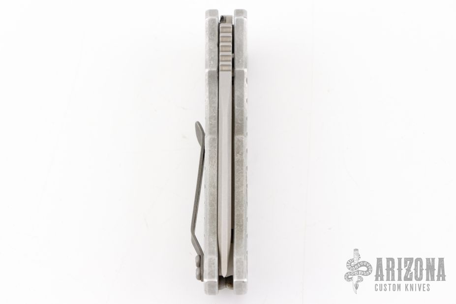 This MAC2 features a stonewashed clip point Magnacut blade with a notched thumbrest. The handle features an atomic frag aluminum frame with a stonewashed tip up pocket clip. Comes with original box and COA. Excellent condition.