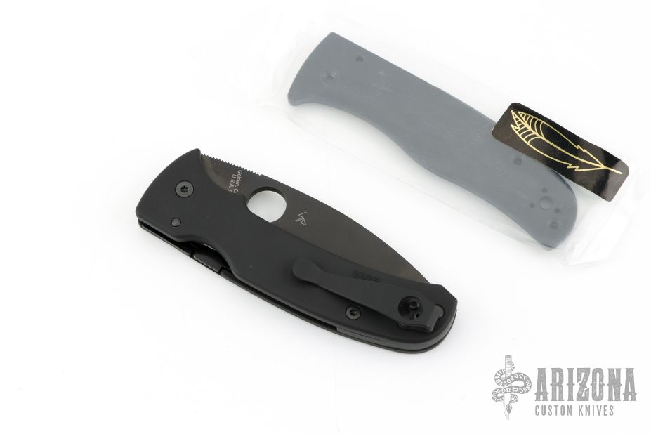In its basic form, the Bodacious pairs a satin-finished blade with brightly finished handle hardware. Since its stout design is sure to be popular among tactical and duty-bound end users, it will also be available in a non-reflective, all-black format. Optimized for environments where light discipline is a concern, the all-black version will feature a tough Diamond-Like Carbon (DLC) blade coating and matching black coatings on the handle liners, clip, and other key hardware. Both the satin-finished and black-bladed versions will be available in choice of PlainEdge or fully serrated SpyderEdge formats.