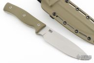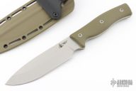 This GSO 5.1 from Survive Knives features a stonewashed drop point blade with notched thumbrest, .189" blade stock and 1.514" blade depth, full tang construction. The handle has green G-10 scales over full tang construction. Includes kydex sheath and original box. Excellent condition.