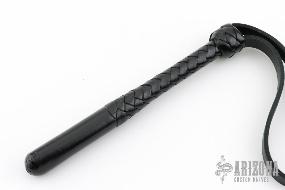 Black Cowhide Leather 796 Blackjack from DDWhips. Spring Core and leather strap. 8.5" not including strap. Comes with COA. New from maker.