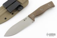 This GSO 4.7 from Survive Knives features a stonewashed drop point blade with notched thumbrest, .153" blade stock and 1.138" blade depth, full tang construction. The handle has green micarta scales. Includes kydex sheath and original box. Excellent condition. Factory 2nd, but I can't see anything wrong with it.